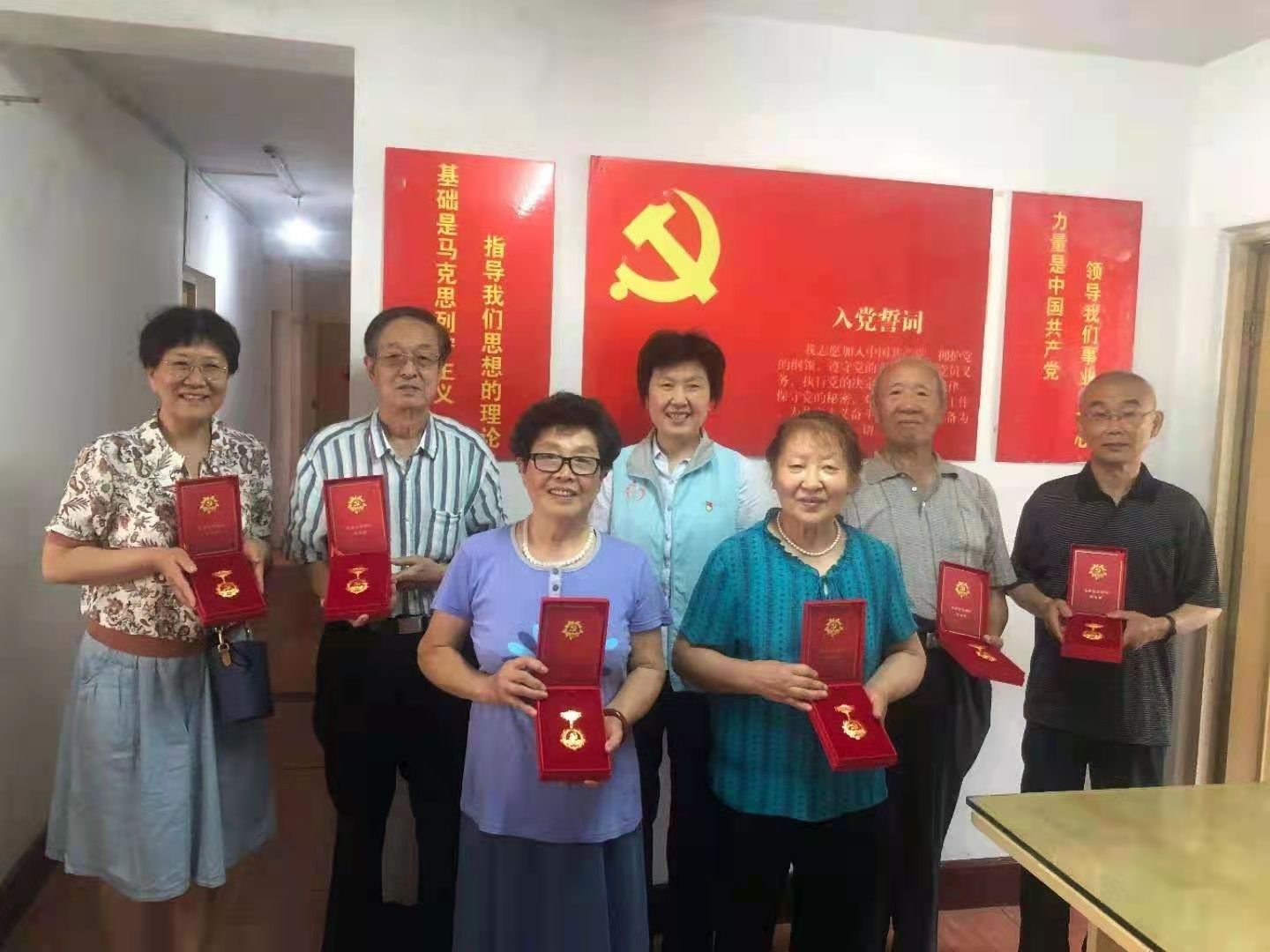 韓世和(右一)榮獲“光榮在黨50年”紀(jì)念章