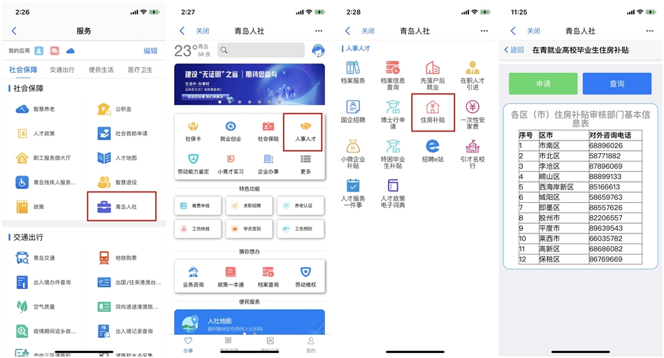“愛山東·青e辦”內(nèi)的補(bǔ)貼申請(qǐng)步驟也很簡(jiǎn)便易懂。首先,在“愛山東·青e辦”APP“服務(wù)”詳情頁找到社會(huì)保障分類下的“青島人社”應(yīng)用;然后,在應(yīng)用詳情頁的“人事人才”欄目下,找到“住房補(bǔ)貼”模塊,點(diǎn)擊進(jìn)入詳情頁后點(diǎn)擊申請(qǐng),根據(jù)實(shí)際情況填寫、提交相關(guān)材料,點(diǎn)擊確認(rèn)即可完成在線申請(qǐng)。