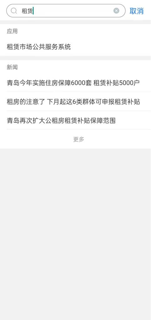 1、打開“青e辦”APP首頁,在上方輸入搜索“租賃市場公共服務系統(tǒng)”,點擊進入。