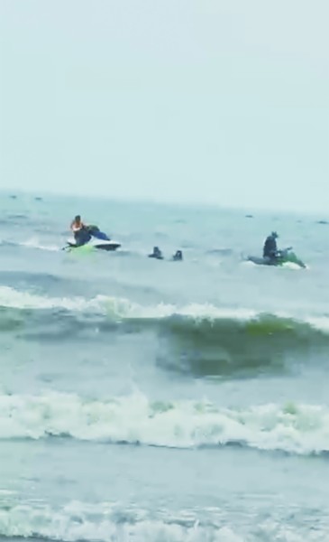 經(jīng)過多方聯(lián)系了解,記者找到了參與救人的兩位沖浪愛好者,他們是北浪沖浪俱樂部的會(huì)員色川浩市和伊藤公平,兩位都是日本人,來青島定居多年,每天都會(huì)到俱樂部換衣服、拿板、下海沖浪。7月2日下午,兩人也像往常一樣去石老人浴場(chǎng)玩板,突然間聽到有人大聲呼救,“兩輛摩托艇無法實(shí)施救援,我當(dāng)時(shí)距離事發(fā)海域只有20米左右,就坐著沖浪板去找孩子,想讓他上我的沖浪板,但他拒絕接受幫助,還繼續(xù)往海里游,”伊藤公平告訴記者,“當(dāng)時(shí)海浪非常大,我說這樣下去你會(huì)淹死的,慢慢地幫助他冷靜了下來,后來朋友色川浩市和另一位救人者也來了,我們一起通過沖浪板把他救了出去?!?/p>