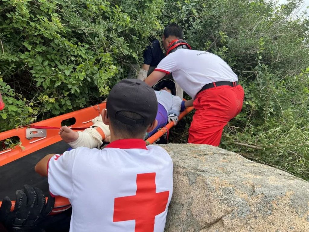 2022年7月3日上午10時(shí)16分,平度紅十字藍(lán)天救援中心接驢友電話求救,老龍灣風(fēng)景區(qū)裕風(fēng)頂附近有人受傷急需救援,救援隊(duì)快速啟動(dòng)應(yīng)急響應(yīng)機(jī)制,攜帶醫(yī)療裝備、繩索、擔(dān)架等山地救援裝備向事發(fā)區(qū)域集結(jié)。當(dāng)天上午11時(shí)7分,救援隊(duì)員到達(dá)老龍灣,指揮部現(xiàn)場(chǎng)研判首先出動(dòng)無(wú)人機(jī)迅速鎖定傷者位置并引導(dǎo)隊(duì)員登山,并根據(jù)現(xiàn)場(chǎng)情況下達(dá)第二梯隊(duì)結(jié)集指令。
