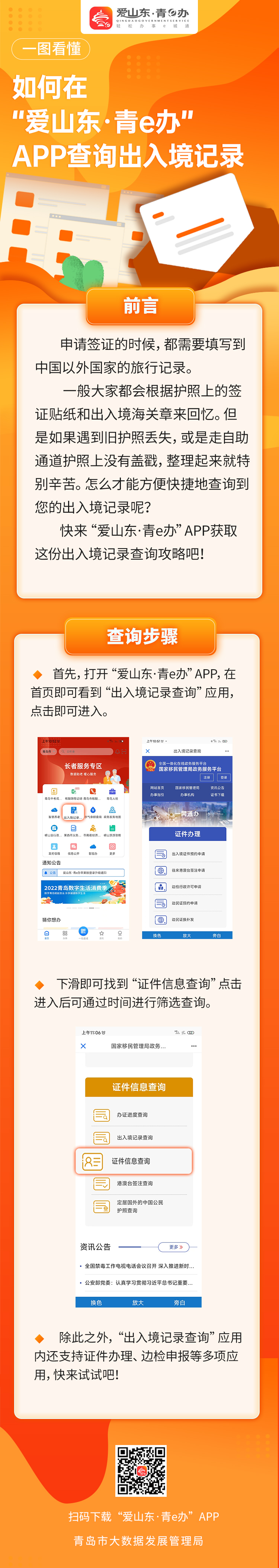 一圖看懂|如何在“愛山東·青e辦”APP查詢出入境記錄