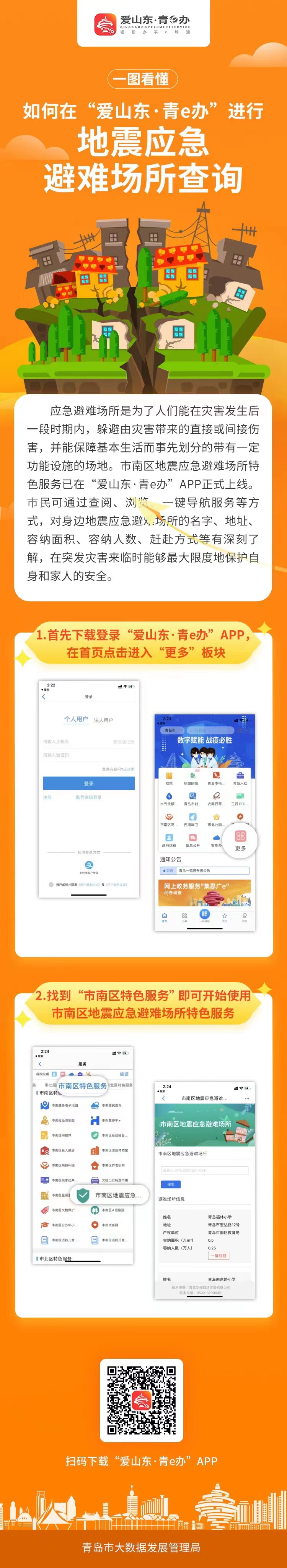 一圖看懂|如何在“愛山東·青e辦”進行地震應(yīng)急避難場所查詢