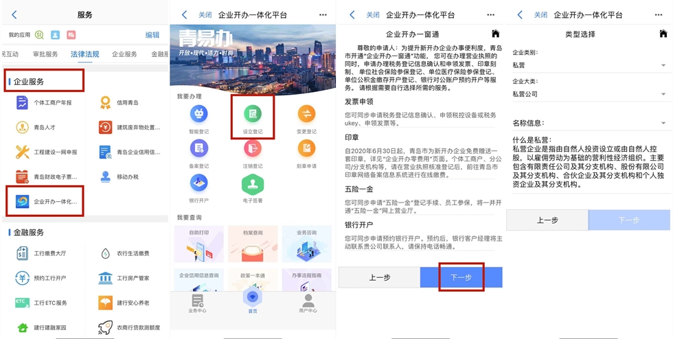 青島新聞網(wǎng)9月15日訊 為提升新開辦企業(yè)辦事便利度,青島市開通“企業(yè)開辦一窗通”功能,通過企業(yè)開辦一體化平臺,企業(yè)登記、稅務、刻章、社保、醫(yī)保、公積金、銀行開戶,開辦企業(yè)實現(xiàn)“一網(wǎng)通辦、全程網(wǎng)辦”。為進一步優(yōu)化營商環(huán)境、提升便民利企服務效率,“愛山東?青e辦”APP接入了企業(yè)開辦一體化平臺,擴展企業(yè)開辦掌上辦理渠道。