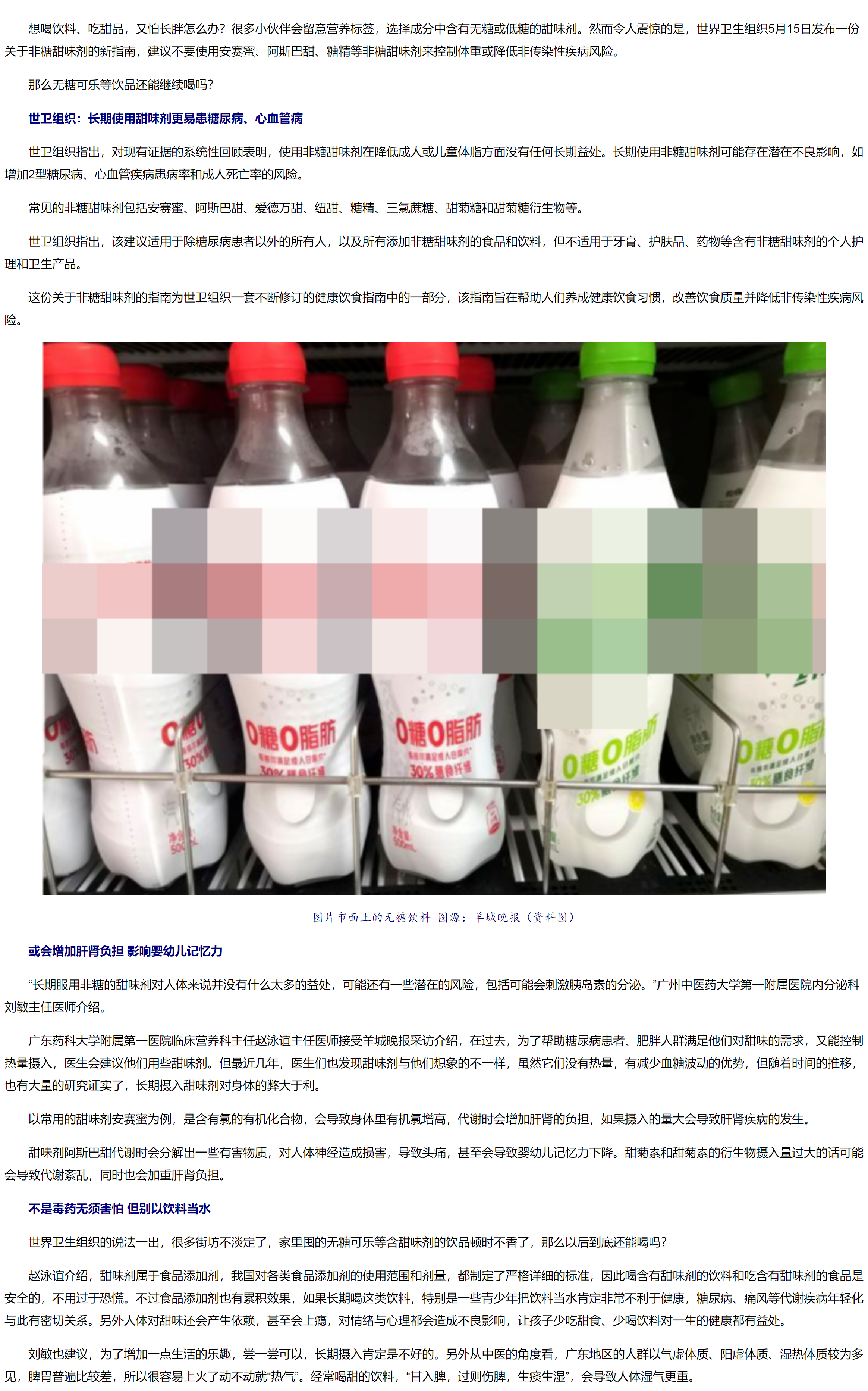 世衛(wèi)組織建議停止使用無糖甜味劑,無糖可樂還能喝嗎?