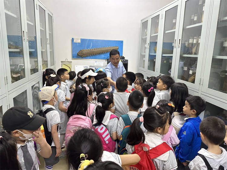 大班小朋友來到了海洋生物標本館。該館是目前國內(nèi)規(guī)模最大、亞洲館藏量最豐富的標本館。進入標本館,小朋友們就被這里豐富的物種所驚艷,帝王蟹,巨型章魚,巨型龍蝦……各種類型的珍貴海洋生物標本吸引著大家探索的目光,小朋友在展館中與海洋生物親密接觸,身臨其境感受著海洋的豐富多彩。