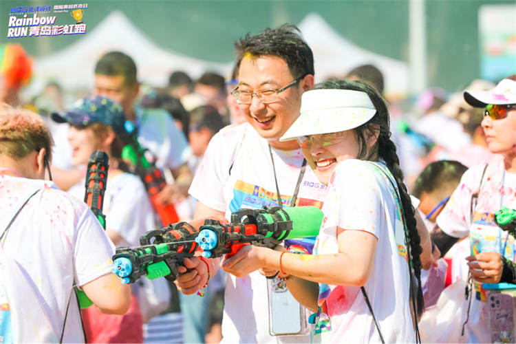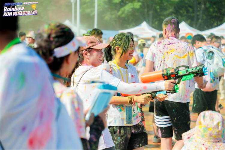 伴隨著動(dòng)感的音樂(lè),水槍大戰(zhàn)+電音派對(duì)同時(shí)開(kāi)啟,DJ與舞者帶領(lǐng)全場(chǎng)一起嗨翻這一刻,大家把彩色玉米粉同時(shí)拋向空中,彩色的粉末隨風(fēng)飛舞,吶喊與歡呼交織,色彩與青春碰撞,匯聚成一道道絢爛無(wú)比的彩虹人潮。參賽者還不忘拿起水槍互相噴射,有人更是被眾多人“圍攻”,頭發(fā)上、臉上都是不同的顏色,每個(gè)臉龐都像調(diào)色盤(pán)一樣繽紛生動(dòng)。更有巨型“泡泡槍”將超多白色泡沫噴向空中,瞬間把狂歡氣氛推向高潮。大人與小孩都在潔白細(xì)膩的泡沫里穿梭翻滾,歡樂(lè)的笑臉與笑聲連成片,千余人一起洗泡泡浴,這樣的體驗(yàn)可是非常難得的,相信這快樂(lè)又神奇的時(shí)刻將深深印在每個(gè)人的腦海里。