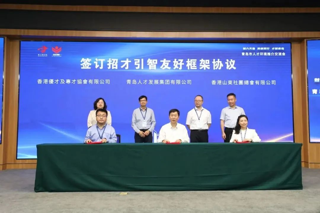 活動(dòng)現(xiàn)場(chǎng),青島人才發(fā)展集團(tuán)與香港山東社團(tuán)總會(huì)、香港優(yōu)才及專才協(xié)會(huì)簽定《招才引智友好框架協(xié)議》,三方將以此為契機(jī),助力青島、香港在產(chǎn)學(xué)研轉(zhuǎn)化、人才交流、人才引育等領(lǐng)域開展深度合作,真正激活人才“一池春水”,助力青島打造新時(shí)代人才“引育用留”新高地,推動(dòng)青港兩地融合互補(bǔ)高質(zhì)量發(fā)展。