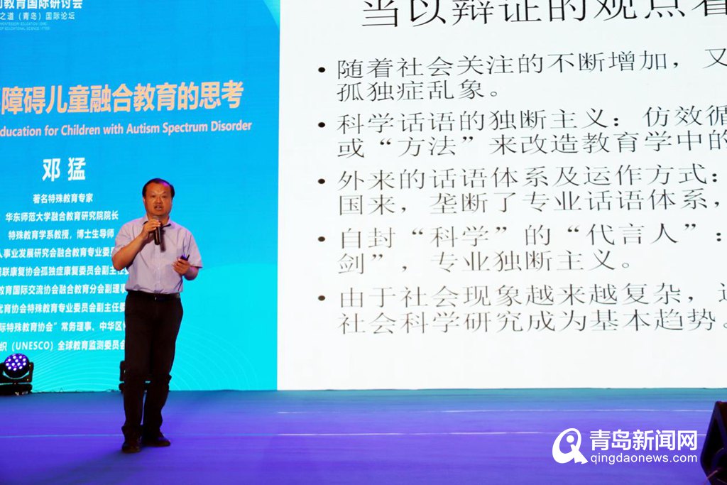 華東師范大學(xué)融合教育研究院院長、教育學(xué)部特聘教授、特殊教育學(xué)系教授、博士生導(dǎo)師鄧猛的分享《孤獨癥譜系障礙兒童融合教育的思考》在現(xiàn)場引起強烈反響。關(guān)于融合教育,鄧猛教授提出:“要從共性出發(fā),尊重特性。從興趣出發(fā),培養(yǎng)能力。從生活出發(fā),全面發(fā)展。從游戲出發(fā),快樂學(xué)習(xí)。從家庭出發(fā),家園協(xié)同。從社區(qū)出發(fā),社會參與?!弊钍煜さ?、最常見的往往最有效,卻最容易為我們所忽略,兒童的社會性發(fā)展只能在社會交往中發(fā)展。