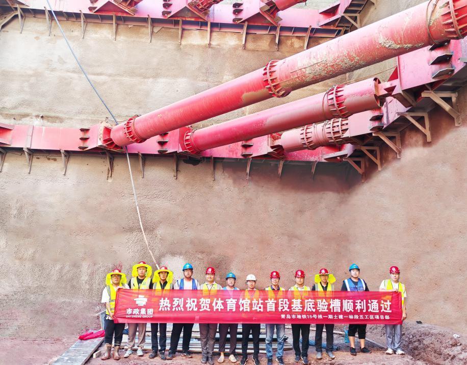 建設(shè)者慶祝體育館站首段基底驗(yàn)槽通過驗(yàn)收