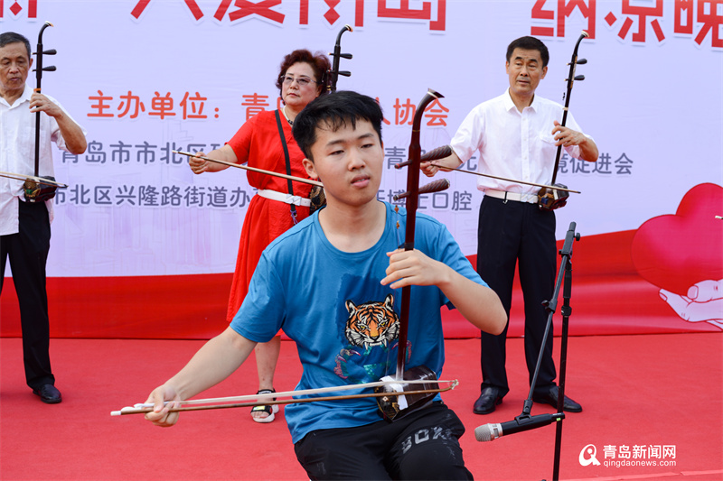 伴隨著歡快的鼓點(diǎn),晚會(huì)在非洲鼓表演《好日子》中拉開(kāi)序幕,歌曲、舞蹈、曲藝、器樂(lè)演奏等等豐富多彩的節(jié)目讓臺(tái)下的觀眾仿佛忘記了夏日炎熱。其中,二胡齊奏《青島》,表達(dá)了對(duì)島城的熱愛(ài)之情,讓在場(chǎng)的觀眾沉浸其中,深受感染;藏族舞《次真拉姆》,用舞蹈的形式祝福偉大祖國(guó),謳歌紅色經(jīng)典,展現(xiàn)新時(shí)代風(fēng)貌;評(píng)書(shū)《月唐演義》引得大家連連叫好;《美麗的心情》、《我的九寨》《聽(tīng)聞遠(yuǎn)方有你》《我愛(ài)你塞北的雪》《爸爸的話》《花橋流水》《紅塵情歌》等歌唱節(jié)目,以及二胡獨(dú)奏《戰(zhàn)馬奔騰》、口琴獨(dú)奏《站在草原望北京》等節(jié)目,也得到了觀眾陣陣掌聲;歌舞《中國(guó)龍》將整場(chǎng)晚會(huì)推向了高潮;隨著《我和我的祖國(guó)》的音樂(lè)響起,晚會(huì)在演員們的齊聲合唱中落下帷幕。