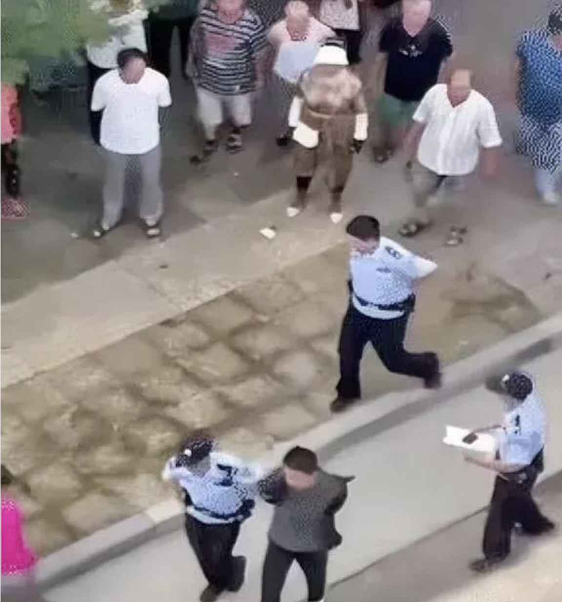 點開視頻后發(fā)現(xiàn),視頻中一名灰衣男子被警方控制帶至頂部標(biāo)有“0519”字樣的警車。
