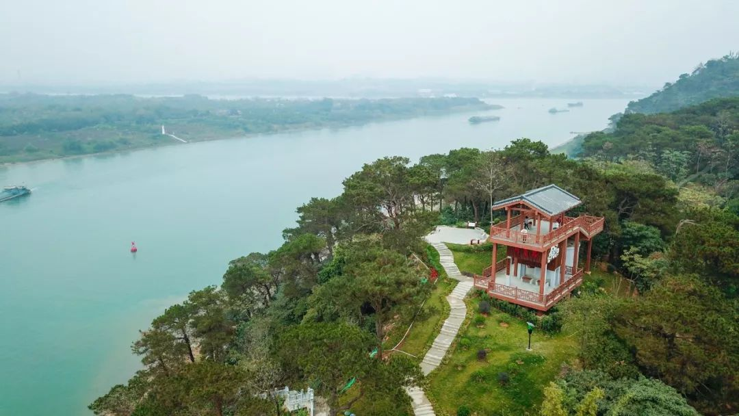 昆都山海拔只有62米,雖不奇不竣,卻名揚(yáng)天下。這里是看“三江匯流”最美的地方,可看到寬闊的西江自西滾滾而來,而浩蕩的北江在上游幾千米將綏江納入后自北而下,三條大江最終在昆都山下相逢。它們?cè)诟髯匝刂榷ê拥老蚰虾拖驏|奔流的同時(shí),以一條長約 1.5千米的河道貫通相連。這條河道有一個(gè)特別的名字——思賢滘。