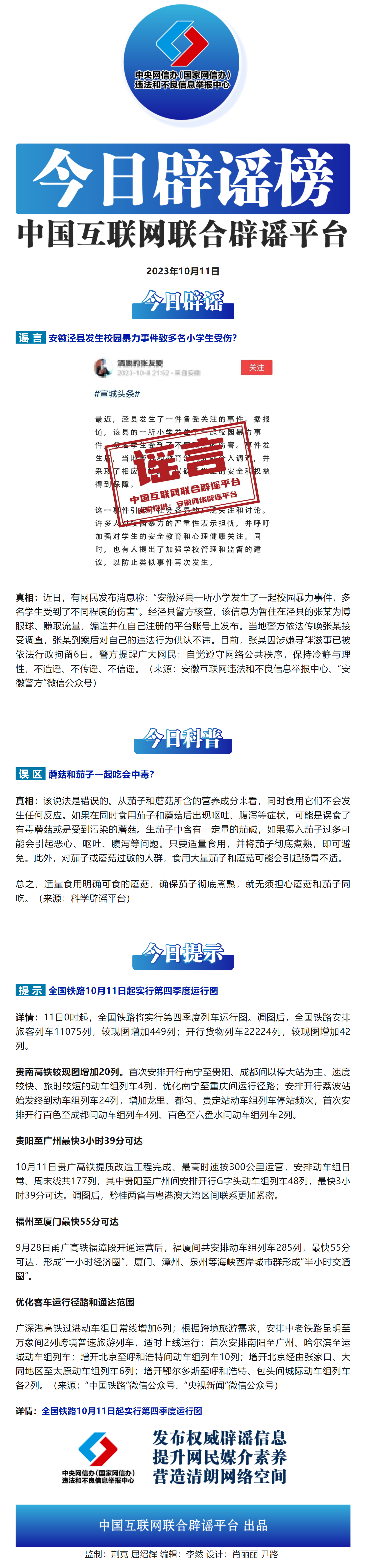 今日辟謠(2023年10月11日)