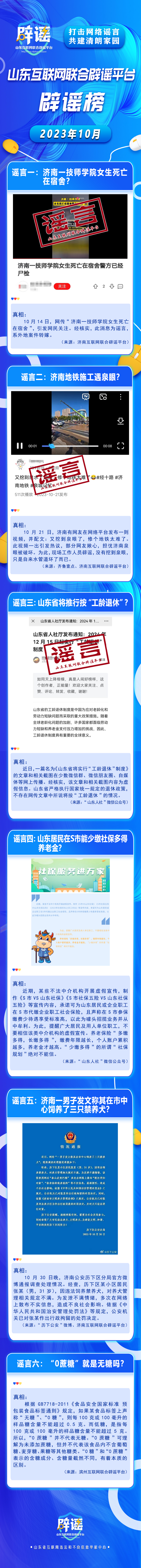 山東互聯(lián)網(wǎng)聯(lián)合辟謠平臺2023年10月辟謠榜
