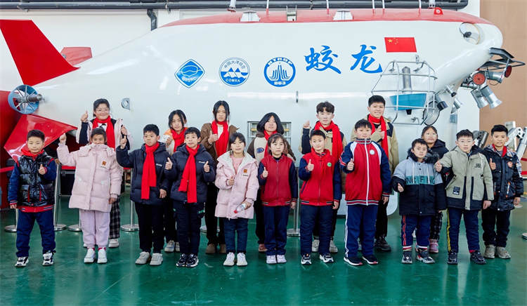 研學(xué)活動(dòng)第二站來到國家深?;毓芾碇行模谶@里孩子們見到了“蛟龍”號深海載人潛艇的1:1模型,聆聽工作人員講解深海自然及科考知識。在好奇的目光和陣陣驚嘆聲中,孩子們興奮地遨游在神秘又富饒的海底世界。
