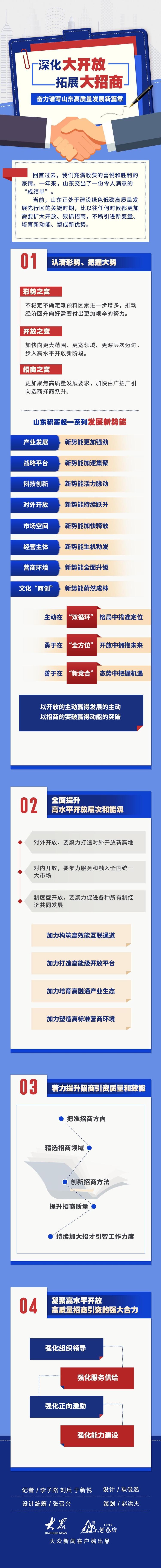 2月18日,節(jié)后首個工作日,山東省委、省政府在濟南召開全省高水平開放暨高質量招商引資大會,以習近平新時代中國特色社會主義思想為指導,深入學習貫徹習近平總書記對山東工作的重要指示要求,動員全省上下奮發(fā)進取、積極作為,深化大開放、拓展大招商,擂起山東高質量發(fā)展的戰(zhàn)鼓,奏響新時代社會主義現代化強省建設的強音。