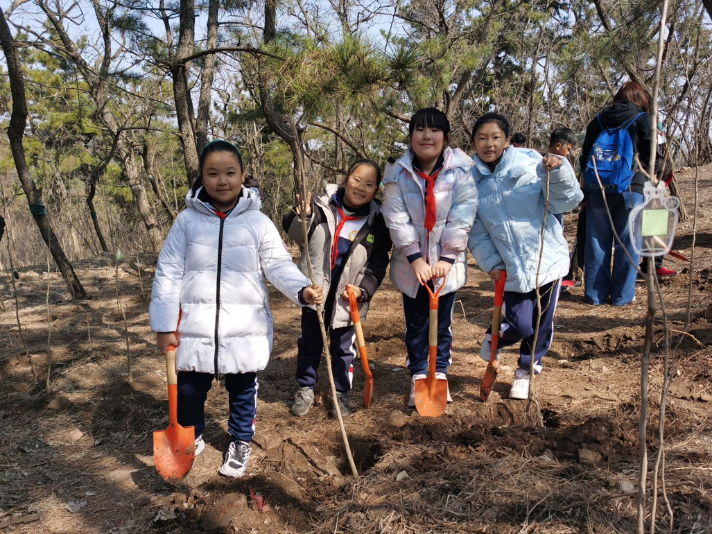 隨后,同學(xué)們來到北嶺山林間,親自動手將纖細的樹苗認真地種進春天的土壤中,以實際行動為美麗青島增添一抹動人的春綠。