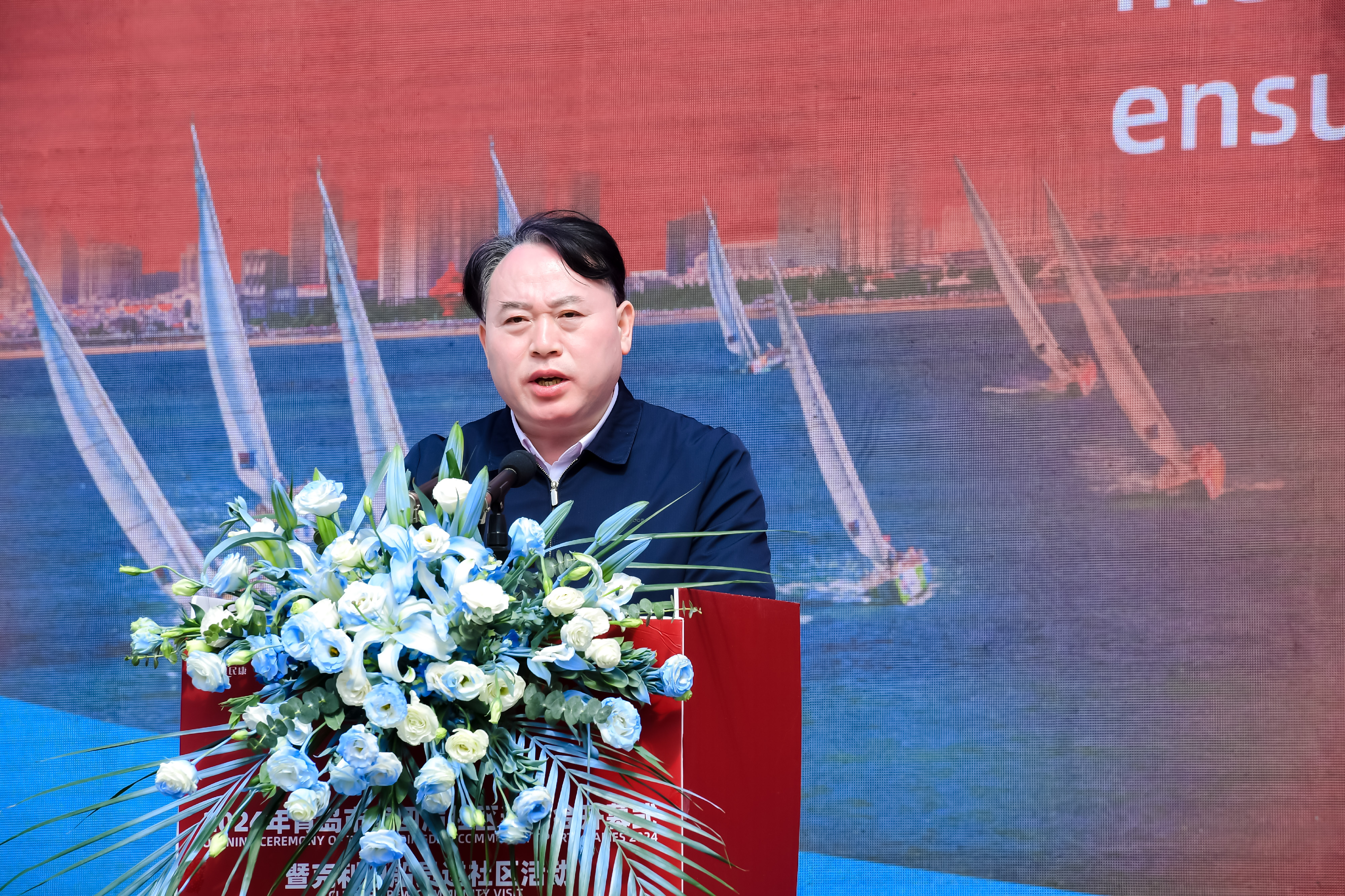 蔡全記在致辭中表示,今年是我市全力爭(zhēng)創(chuàng)全國(guó)全民運(yùn)動(dòng)健身模范市、推動(dòng)群眾體育全面起勢(shì)的關(guān)鍵之年。社區(qū)運(yùn)動(dòng)會(huì)突出全社會(huì)全齡化參與,多層級(jí)多部門(mén)聯(lián)動(dòng),聚焦全民健身熱點(diǎn),回應(yīng)群眾健康期盼。對(duì)克利伯環(huán)球帆船賽船員們進(jìn)社區(qū)參與互動(dòng),為本屆社區(qū)運(yùn)動(dòng)會(huì)開(kāi)幕增添新的特色表示歡迎。同時(shí),希望各船員們能夠充分體味青島當(dāng)?shù)仫L(fēng)土民情,感受中華文化獨(dú)特魅力,在激烈的賽程里留下美好回憶。