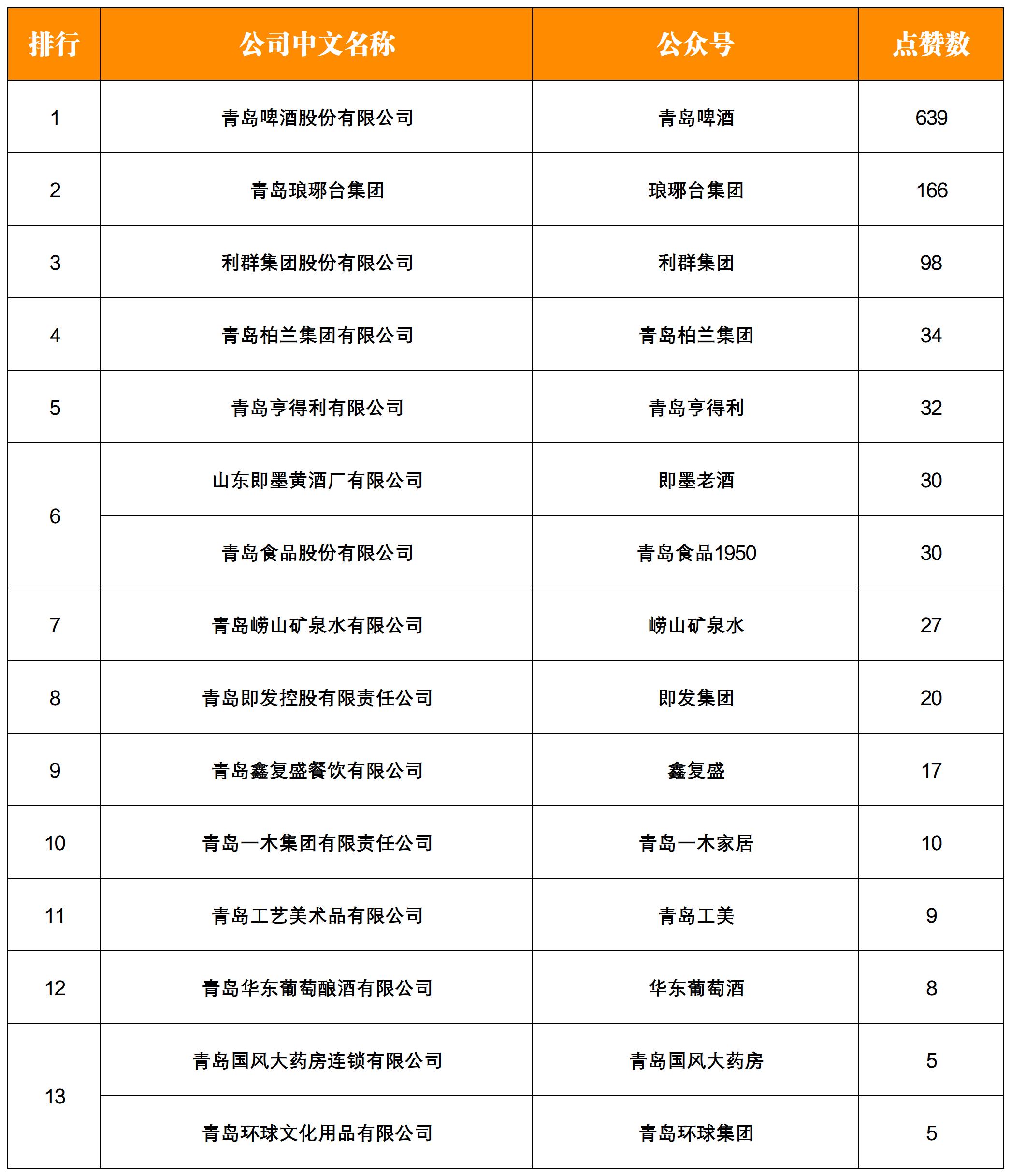 NO.13|權(quán)威發(fā)布:青島老字號(hào)企業(yè)微信影響力月度排行榜TOP15