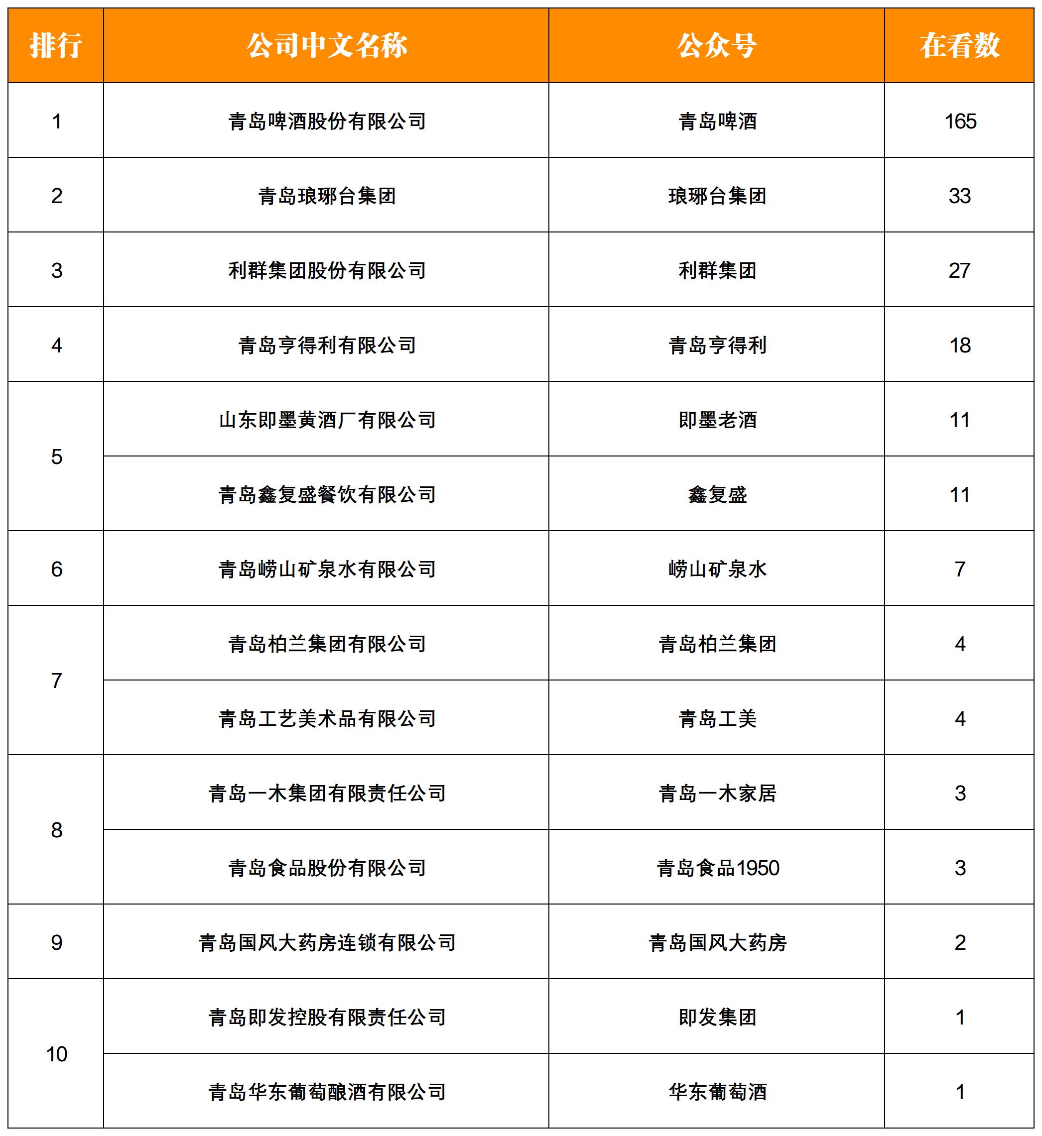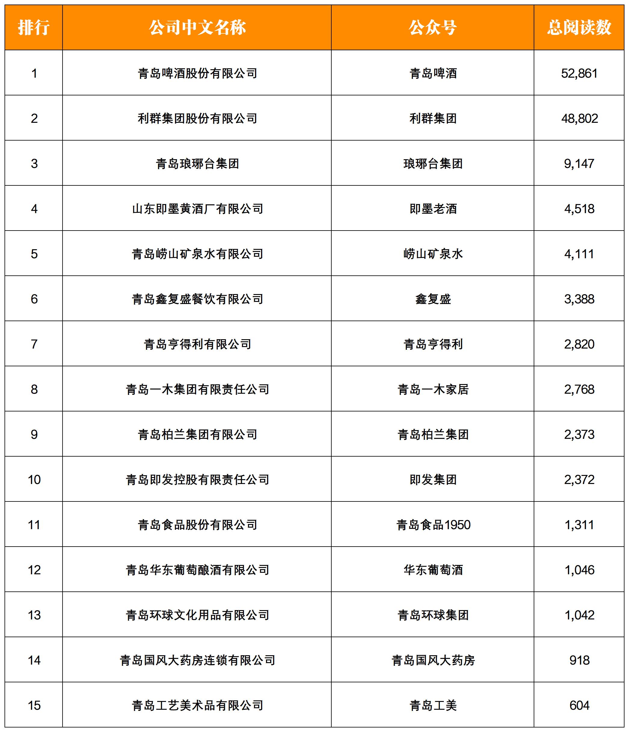 NO.1|權(quán)威發(fā)布:青島老字號(hào)企業(yè)微信影響力月度排行榜TOP15