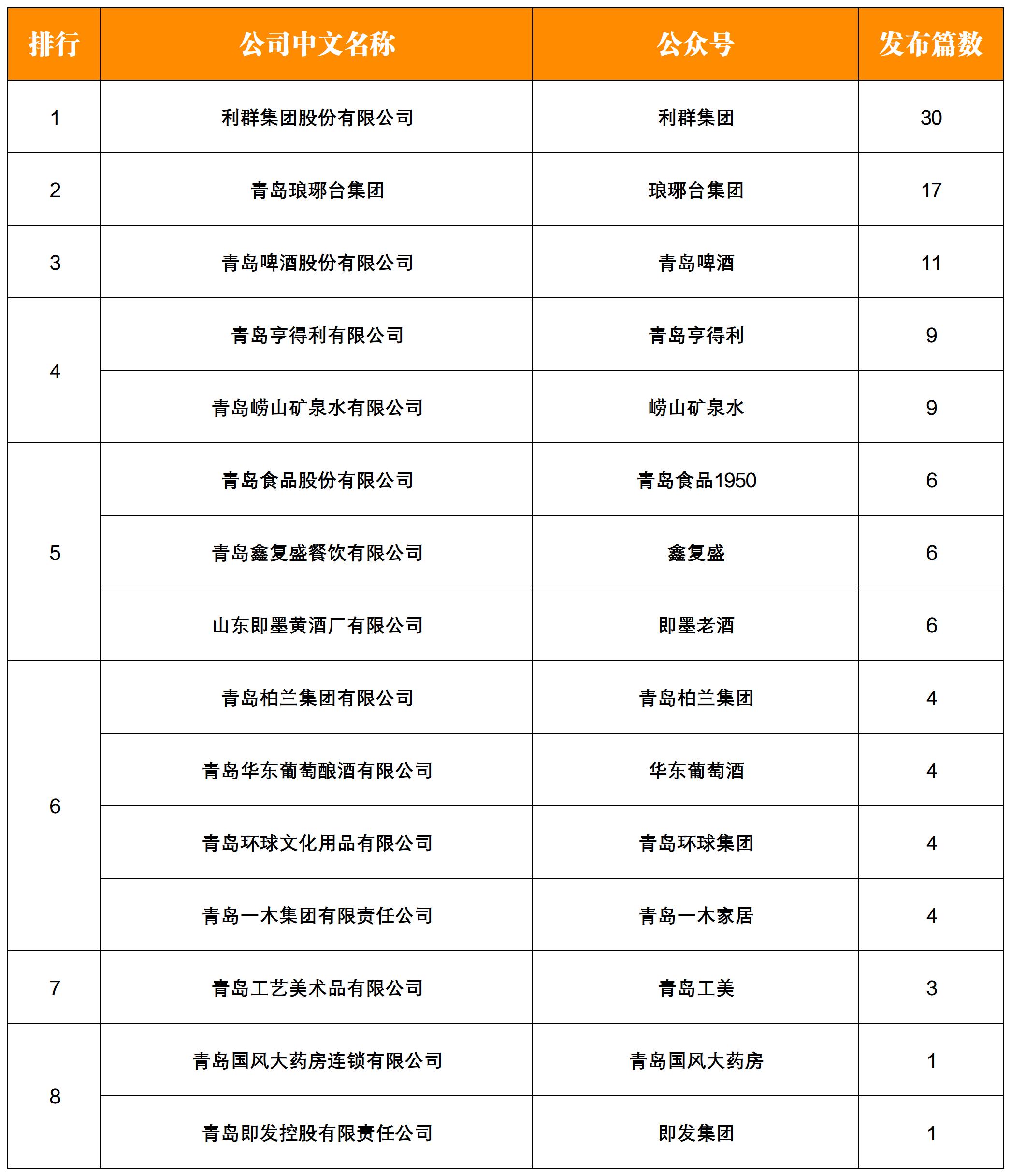 NO.8|權(quán)威發(fā)布:青島老字號(hào)企業(yè)微信影響力月度排行榜TOP15