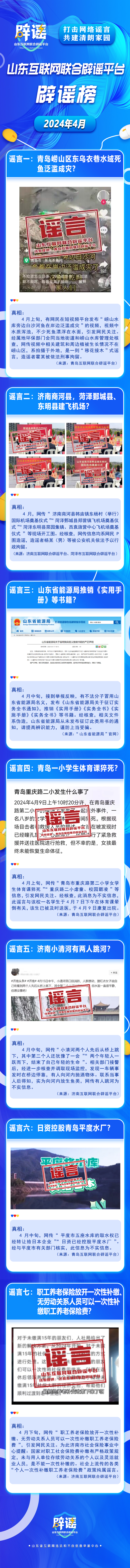 山東互聯(lián)網(wǎng)聯(lián)合辟謠平臺2024年4月辟謠榜發(fā)布