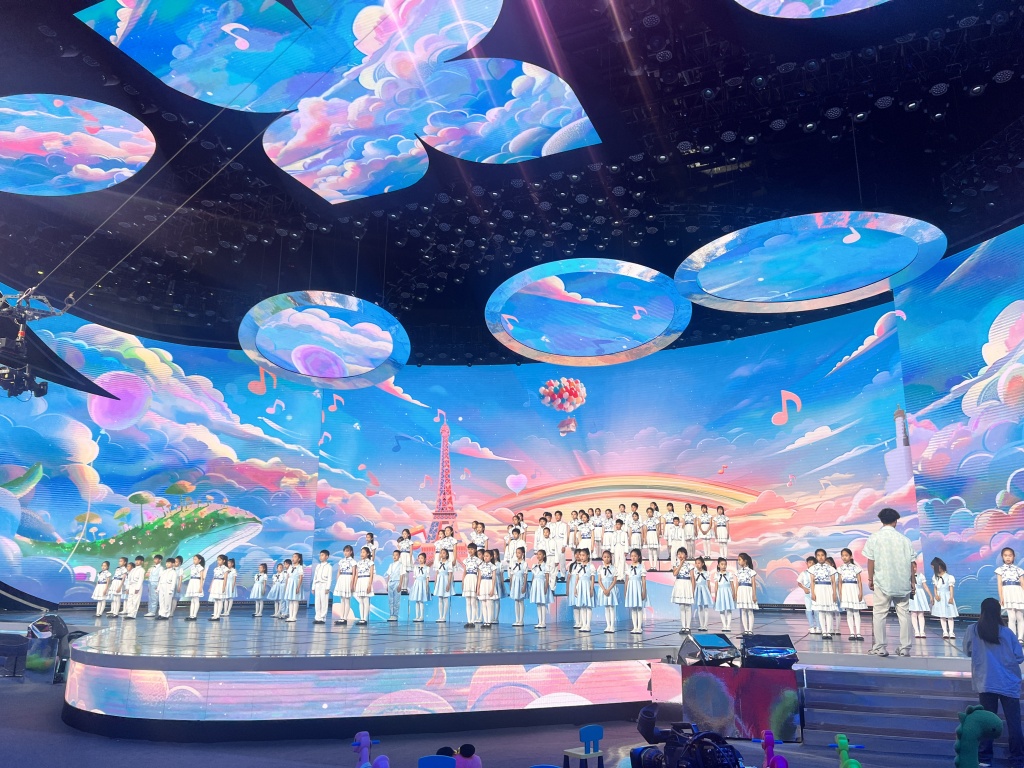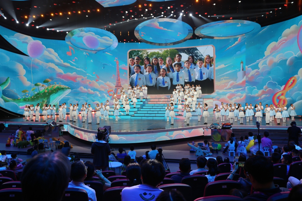 2024年是中法建交60周年。晚會(huì)特別編排的《中外少年云合唱》節(jié)目中,青島廣電小白帆藝術(shù)團(tuán)和中央廣播電視總臺(tái)銀河少年電視藝術(shù)團(tuán)、中國(guó)音樂(lè)學(xué)院附中少年愛(ài)樂(lè)樂(lè)團(tuán)一起,和來(lái)自法國(guó)的邦迪少年合唱團(tuán)“云”同臺(tái),演唱了兩首優(yōu)秀歌曲,用歌聲架起友誼橋梁。