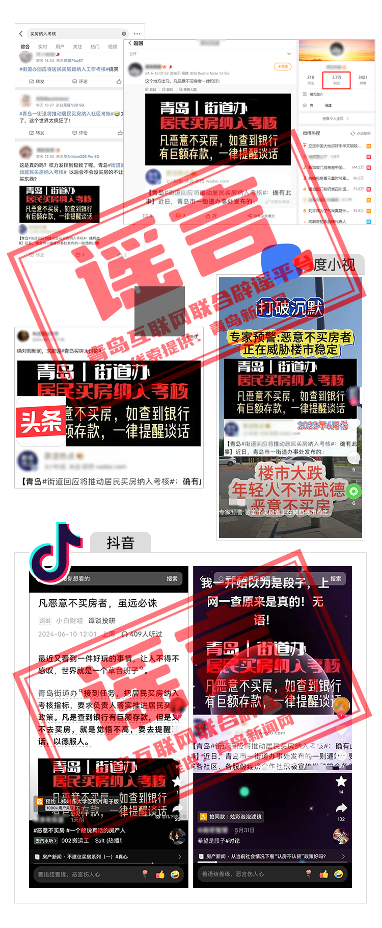 近日,有微博、抖音、今日頭條等平臺的網(wǎng)民發(fā)布消息,稱“青島街道辦將居民買房納入考核,凡惡意不買房,如查到銀行有巨額存款,一律提醒談話”。