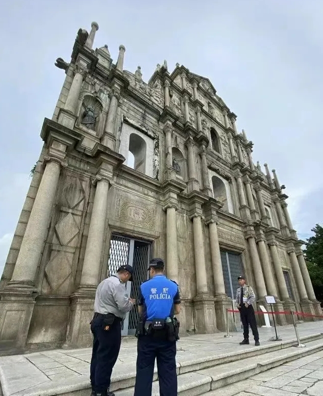 大三巴牌坊疑落石,旅游警察向保安了解事件