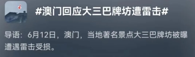 澳門大三巴遭雷擊落石?回應(yīng)來(lái)了
