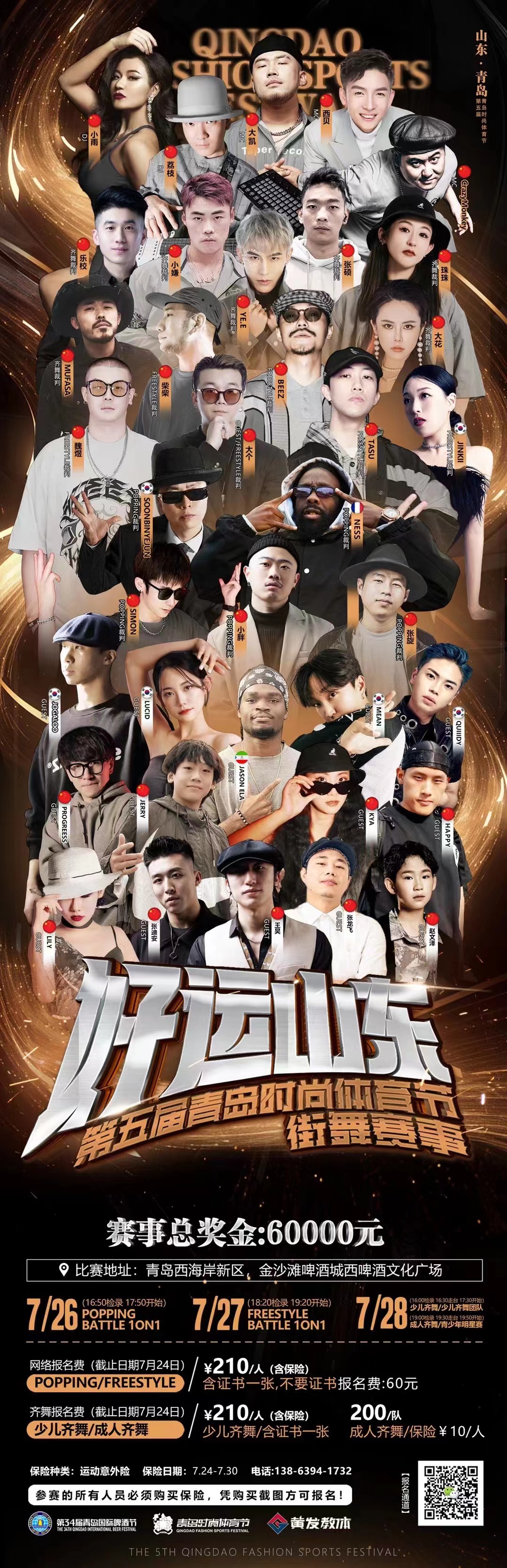 2024年7月26日至28日,青島時尚體育節(jié)-街舞大賽在青島西海岸新區(qū)金沙灘啤酒城重磅啟動,將變身成街舞高手的狂歡樂園!將用炫酷舞姿點(diǎn)燃這個夏天!意為推廣全民健身運(yùn)動和全民健身文化傳播,引領(lǐng)時尚體育發(fā)展新方向,發(fā)掘培育出各地區(qū)更多優(yōu)秀街舞舞蹈作品及街舞人才,讓時尚體育在金沙灘啤酒城大放光彩的同時拓展文旅新業(yè)態(tài),創(chuàng)新文旅消費(fèi)新模式,構(gòu)建休閑新場景,感受盛夏的繽紛時刻。街舞大賽即將火熱開賽!賽事連續(xù)3天,嗨翻全場!