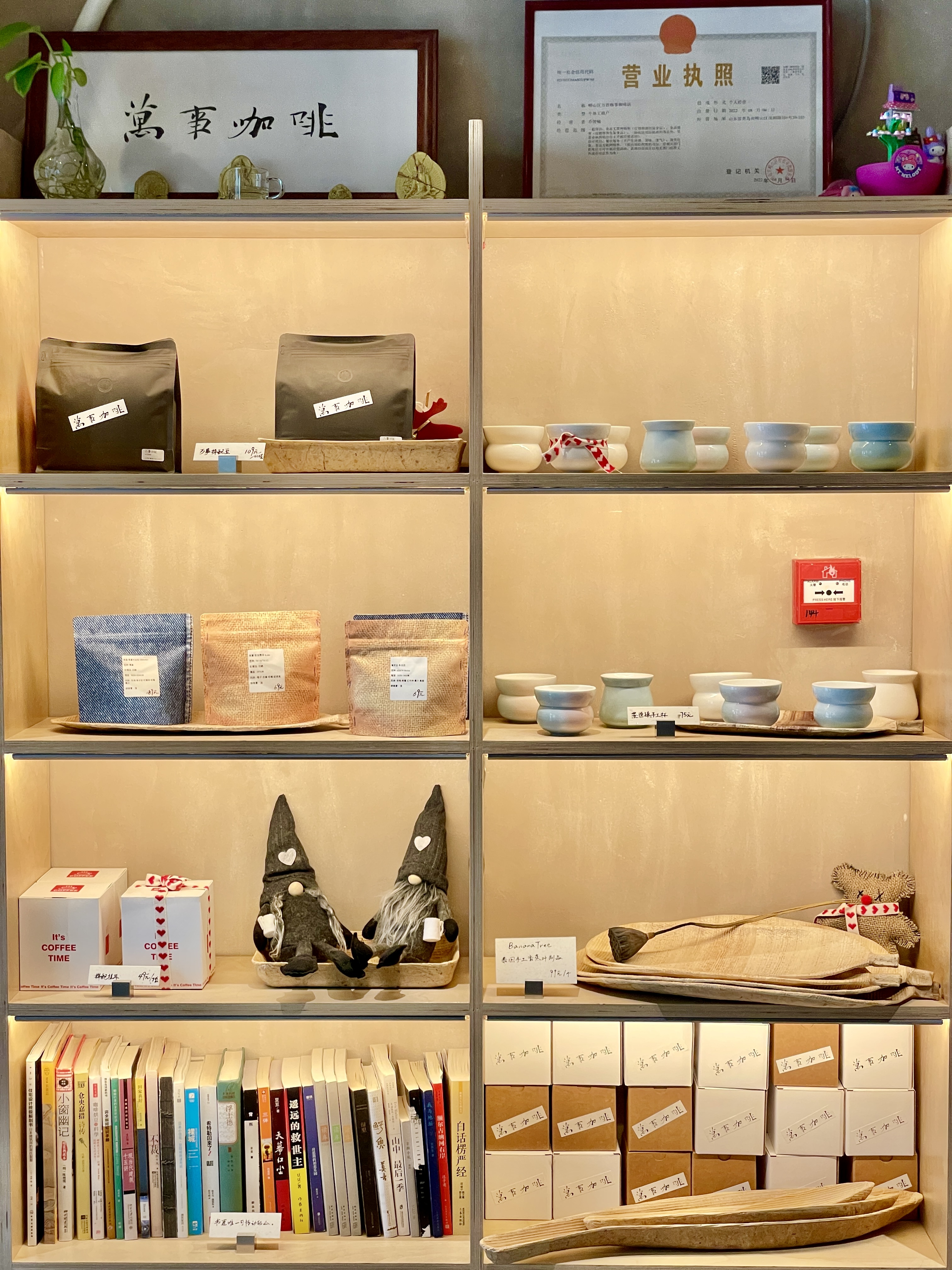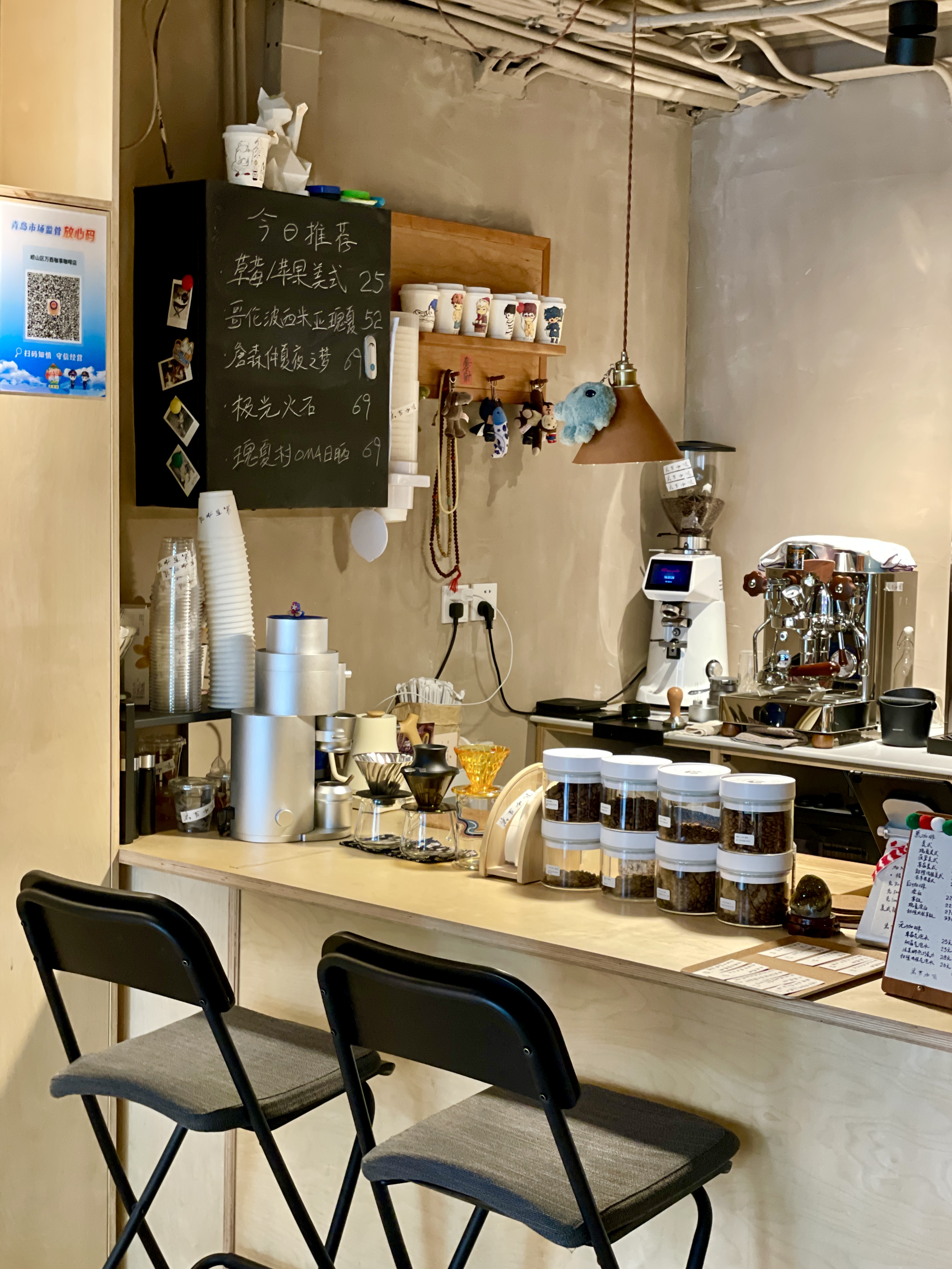 在嶗山萬象匯附近,有一家青島社區(qū)咖啡店——萬事咖啡,面積不大,卻巧妙利用了每一寸空間,沙灘椅、花草、手工制品…不僅顯得溫馨舒適,還添了幾分自然純粹的氣息。