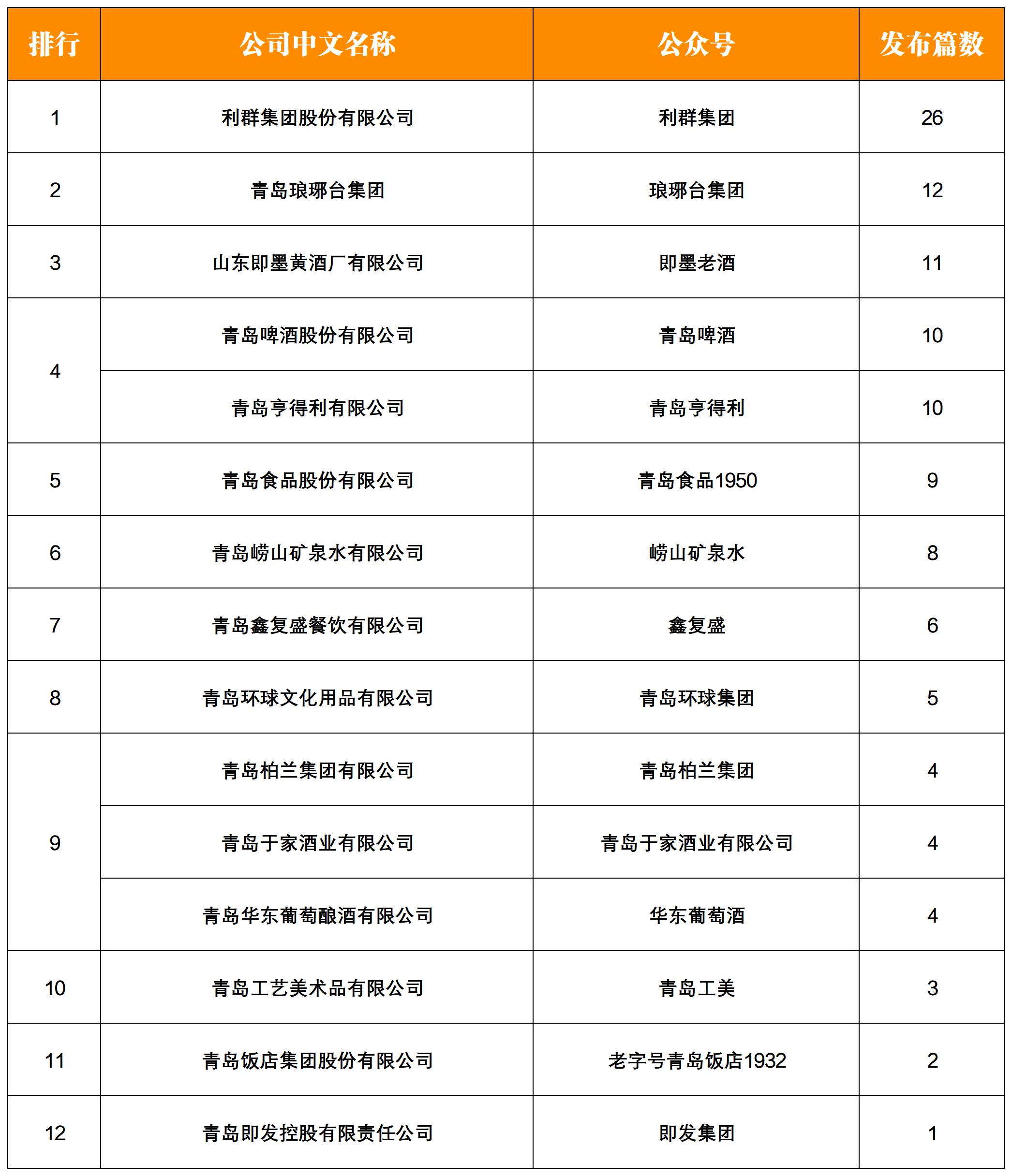 NO.12|權威發(fā)布:青島老字號企業(yè)微信影響力月度排行榜TOP15