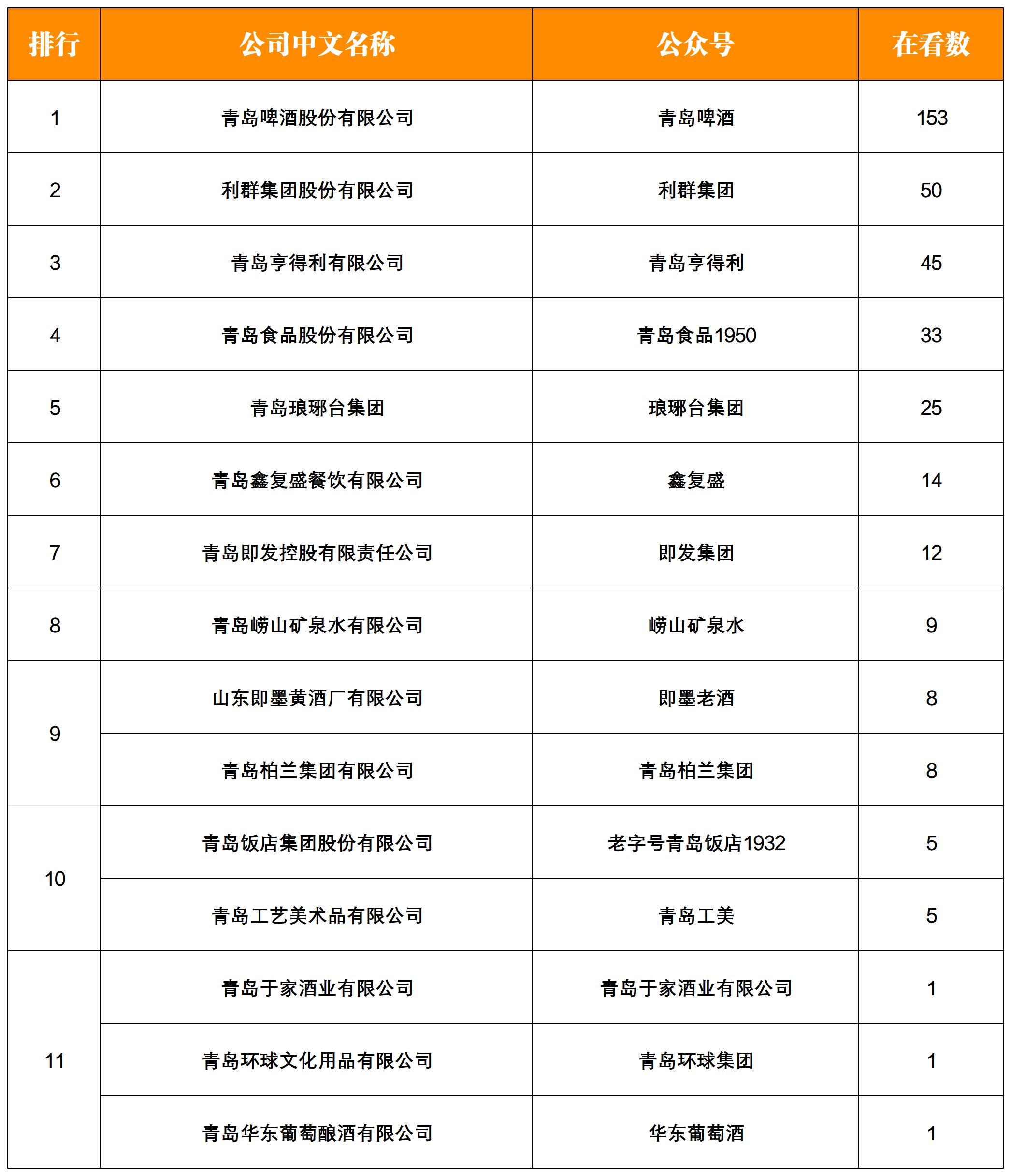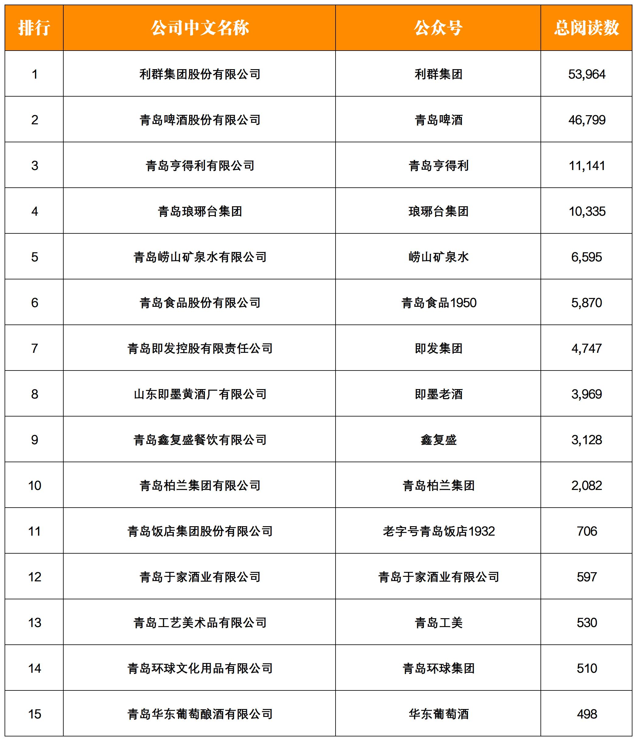 NO.1|權威發(fā)布:青島老字號企業(yè)微信影響力月度排行榜TOP15