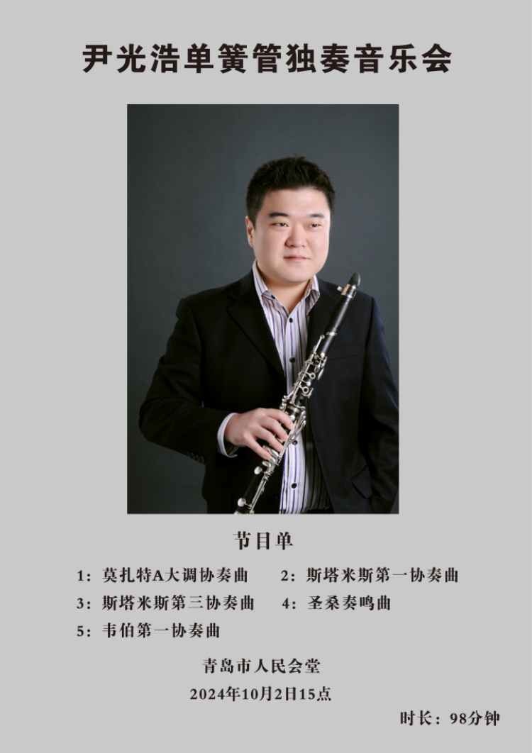 在日常演出中,單簧管在交響樂團(tuán)里有著重要的作用,而在獨(dú)奏場(chǎng)合,單簧管全面展現(xiàn)了優(yōu)雅、深沉的風(fēng)格,每首樂曲都展現(xiàn)出獨(dú)奏家對(duì)音樂的深刻理解和精湛詮釋。業(yè)內(nèi)人士表示,單簧管近年來在青島發(fā)展迅速,高水準(zhǔn)單簧管大師班相繼落地,一批單簧管演奏家也從青島生長(zhǎng)出來。隨著尹光浩這樣的單簧管演奏家不斷出現(xiàn),青島交響樂事業(yè)也日臻成熟。