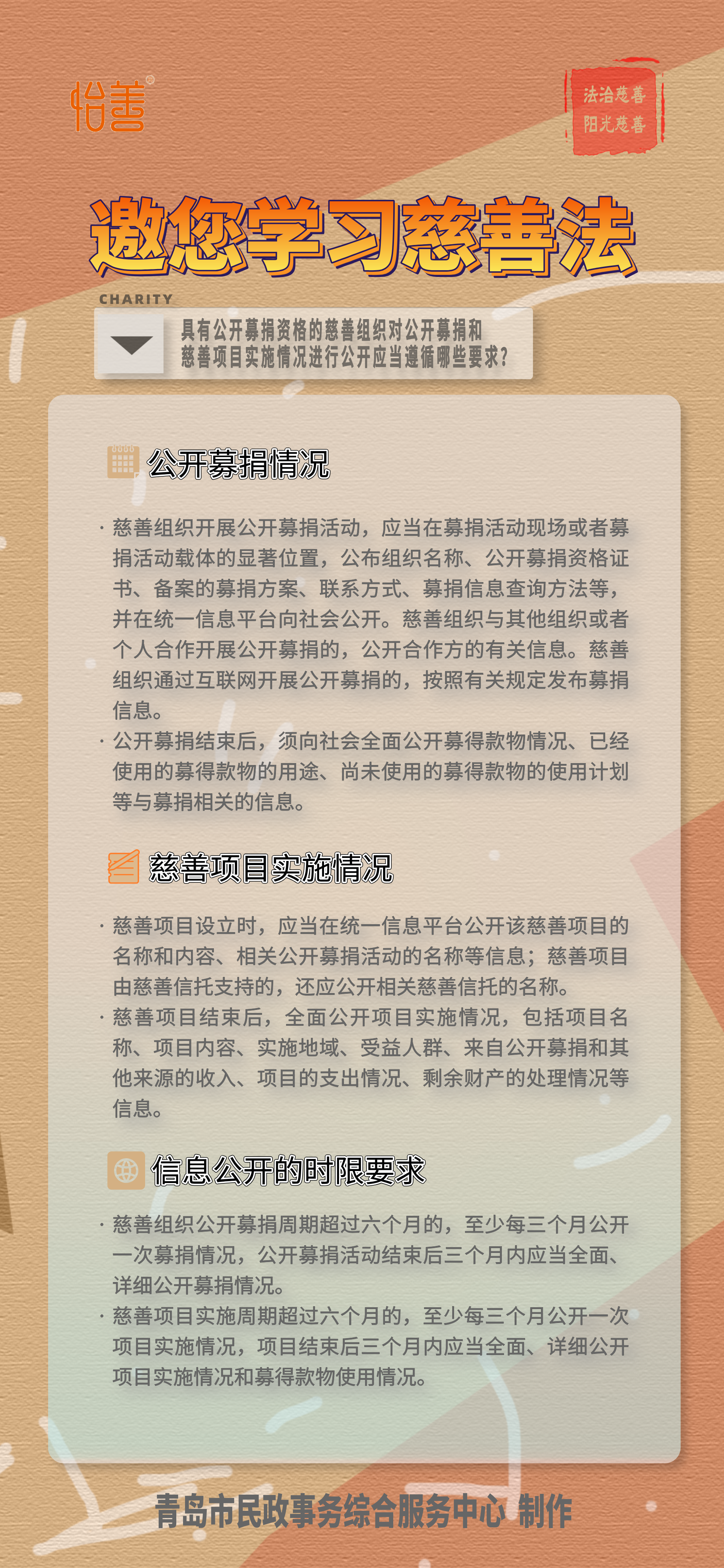 怡善·慈善法規(guī)|邀您學(xué)習(xí)慈善法-具有公開募捐資格的慈善組織對(duì)公開募捐和慈善項(xiàng)目實(shí)施情況進(jìn)行公開應(yīng)當(dāng)遵循哪些要求?