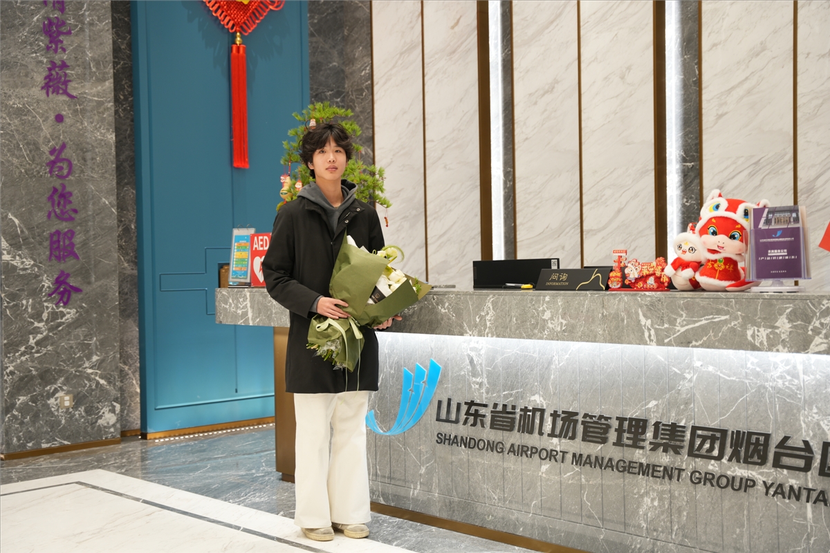立春后的煙臺,仍有絲絲寒意,在煙臺蓬萊機(jī)場國際到達(dá)出口處,記者見到了手捧鮮花的郭亦森。關(guān)注郭亦森的朋友與家人們,也第一時間在現(xiàn)場給他送去了成功飛行落地后熱烈的掌聲與溫暖的擁抱。
