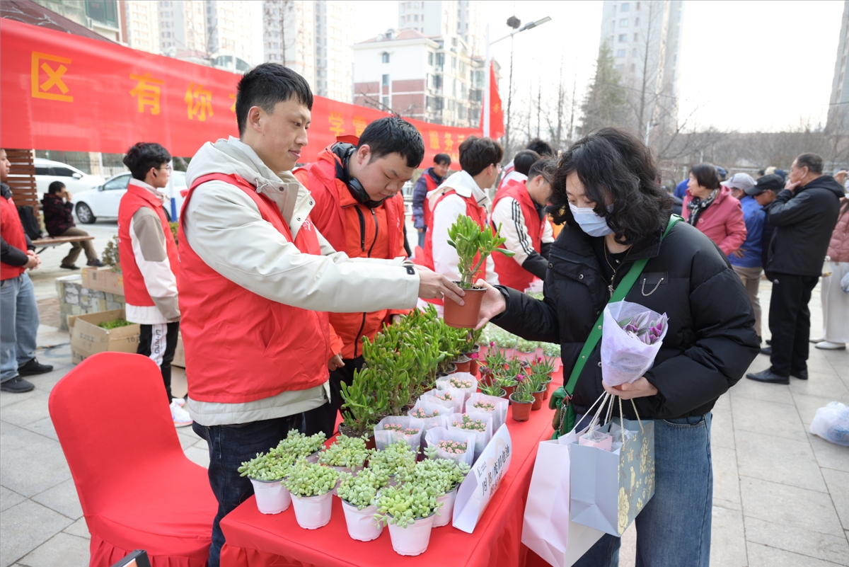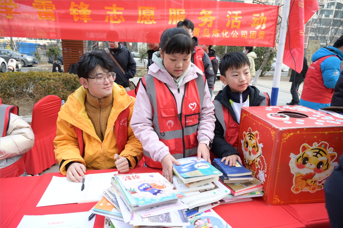 消防科普的對(duì)面,社區(qū)居民們?cè)谇嗄曛驹刚叩囊龑?dǎo)下有序排隊(duì),利用手中的廢舊電池和圖書兌換綠植?!扒鄭u煉化公司志愿者們每年都會(huì)組織類似的環(huán)?;顒?dòng),正得益于這些活動(dòng),我們的環(huán)保意識(shí)逐漸提升,家里的孩子們也學(xué)會(huì)了科學(xué)保存廢舊電池?!鄙鐓^(qū)居民李先生是連續(xù)第三年參加廢舊電池?fù)Q綠植活動(dòng),他非常高興地說到。