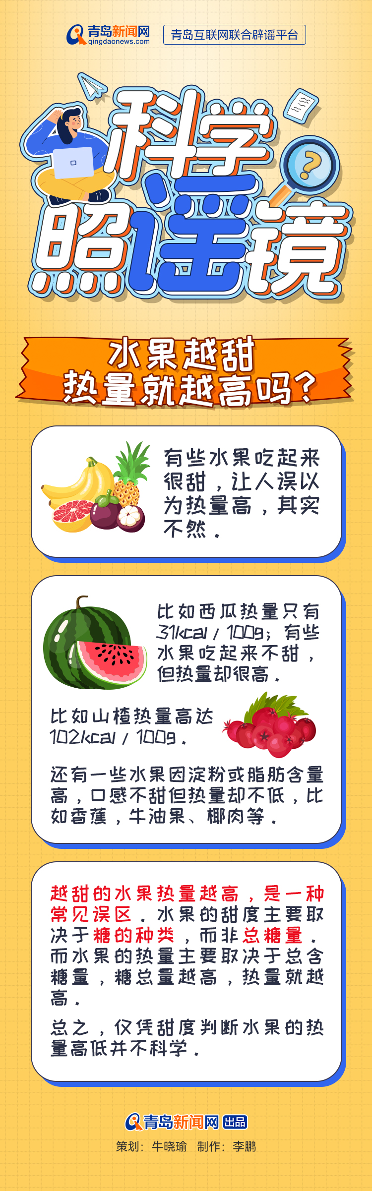 【科學(xué)照“謠”鏡】水果越甜熱量就越高嗎?