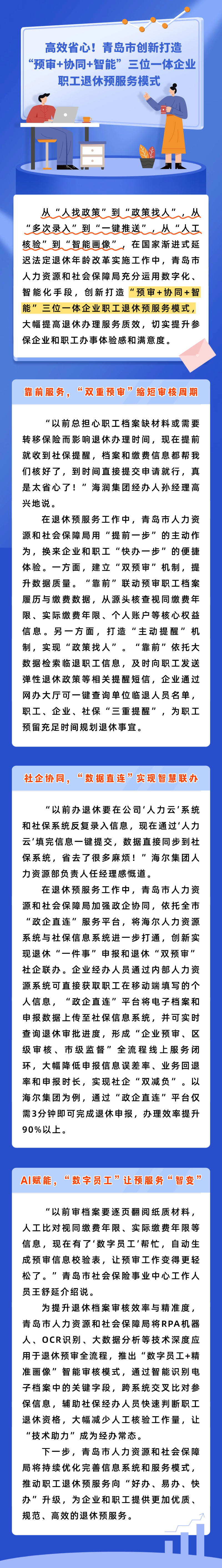 高效省心!青島市創(chuàng)新打造“預審+協(xié)同+智能”三位一體企業(yè)職工退休預服務模式