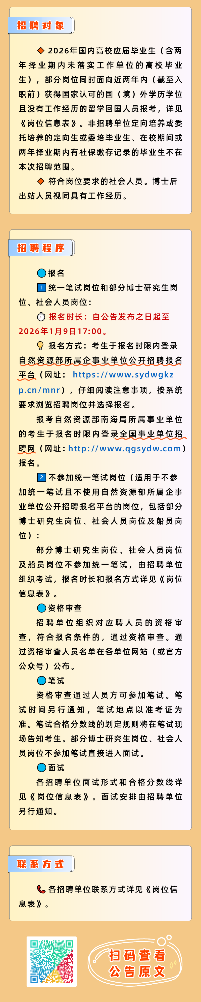 青島有崗??自然資源部所屬單位2026年度公開招聘