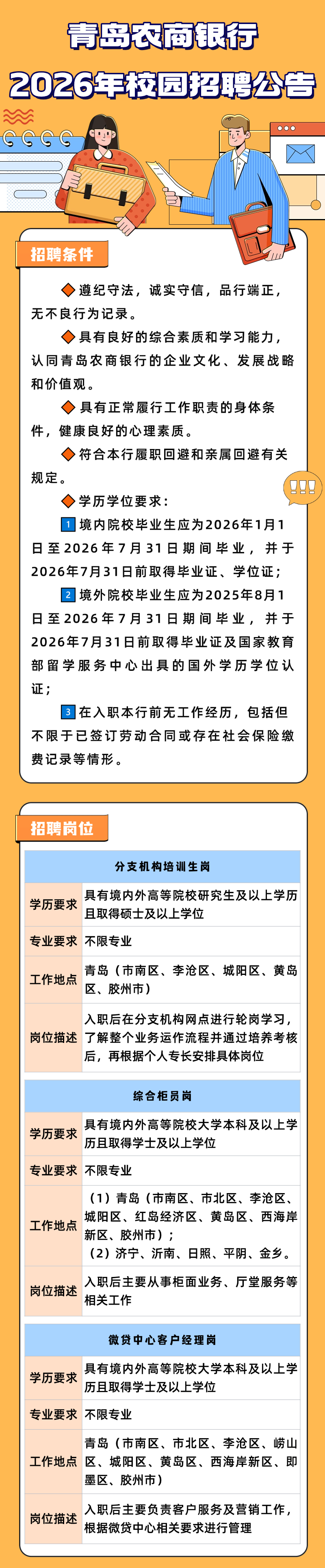 報(bào)名中??青島農(nóng)商銀行2026年校園招聘