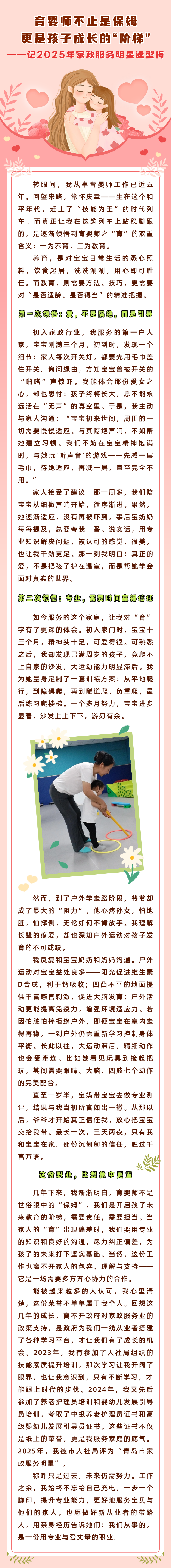 育嬰師不止是保姆,更是孩子成長(zhǎng)的“階梯”——記2025年家政服務(wù)明星逄型梅