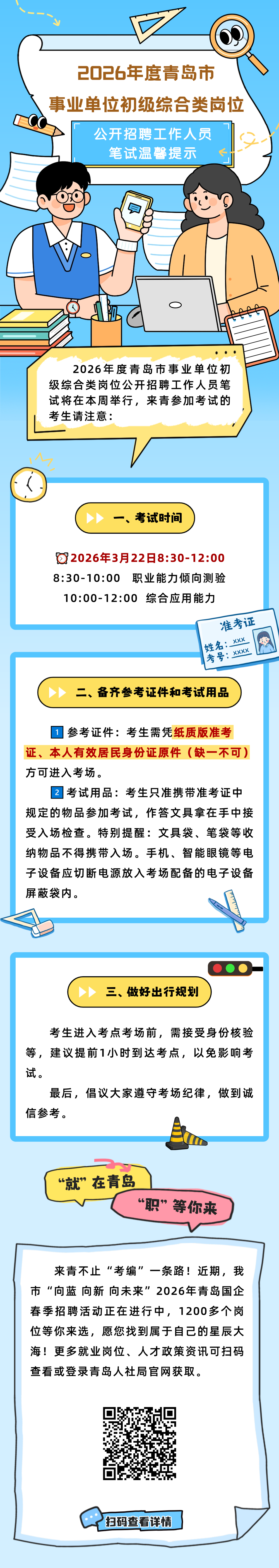 本周日開考??2026 青島事業(yè)單位初級綜合類崗位筆試溫馨提示