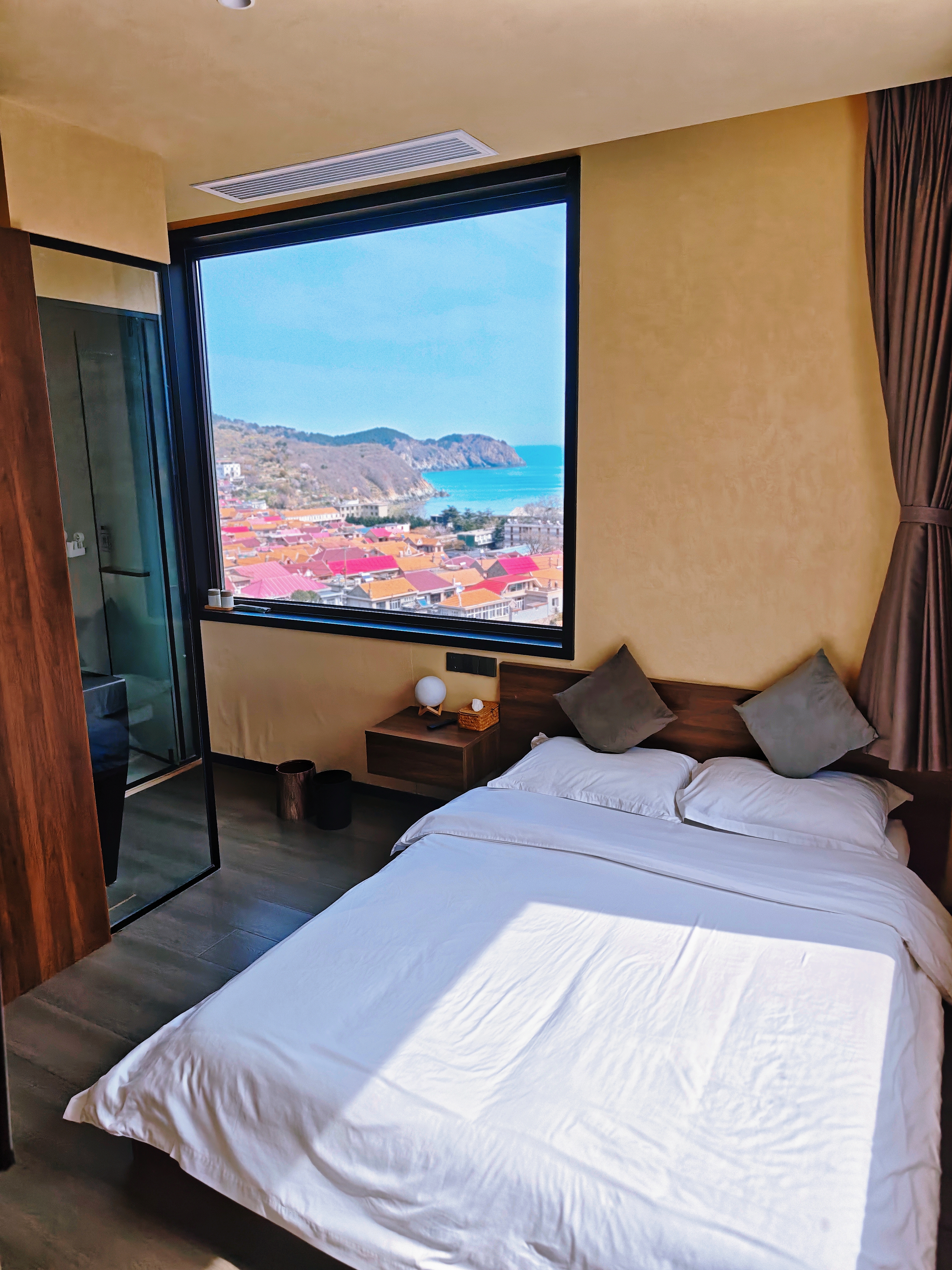 老板曾是職場人,因癡迷嶗山的風(fēng)與海,辭職在此開起民宿+本幫菜館。沒有奢華裝飾卻處處藏心意:手作陶罐插著野花,每扇窗都是天然取景框。