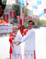 奧運(yùn)火炬結(jié)束山西傳遞 花樣滑冰世界冠軍傳遞祥云