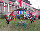 云南昆明民族村少數(shù)民族同胞舉行各種形式迎接圣火。