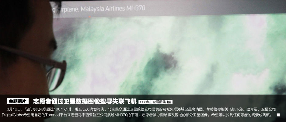 3月12日,一名北京市民在DigitalGlobe公司提供的失聯(lián)海域高清衛(wèi)星圖像搜尋飛機(jī)下落。