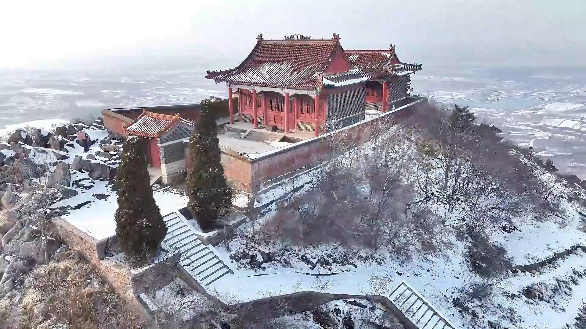 青島膠州市洋河鎮(zhèn):山間迎初雪 美如水墨畫